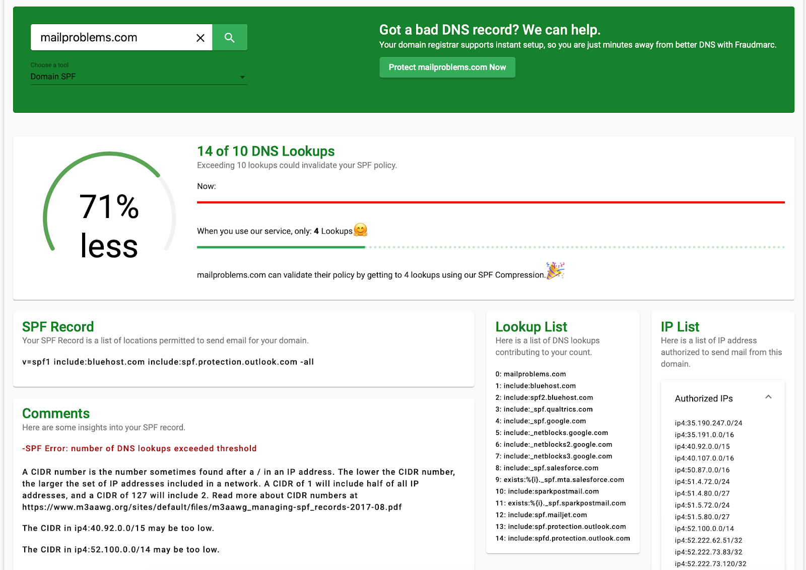 The primary drawbacks we observed with Fraudmarc revolve around its focused feature set and less transparent pricing. While its simplicity can be a strength for some, organizations needing advanced email security beyond DMARC reporting, such as comprehensive blocklist (or blacklist) monitoring, an API for integration, or multi-tenancy for MSPs, might find it limiting. The lack of a clear pricing structure or a free tier can also be a barrier for those looking to try before they buy or manage costs upfront.
